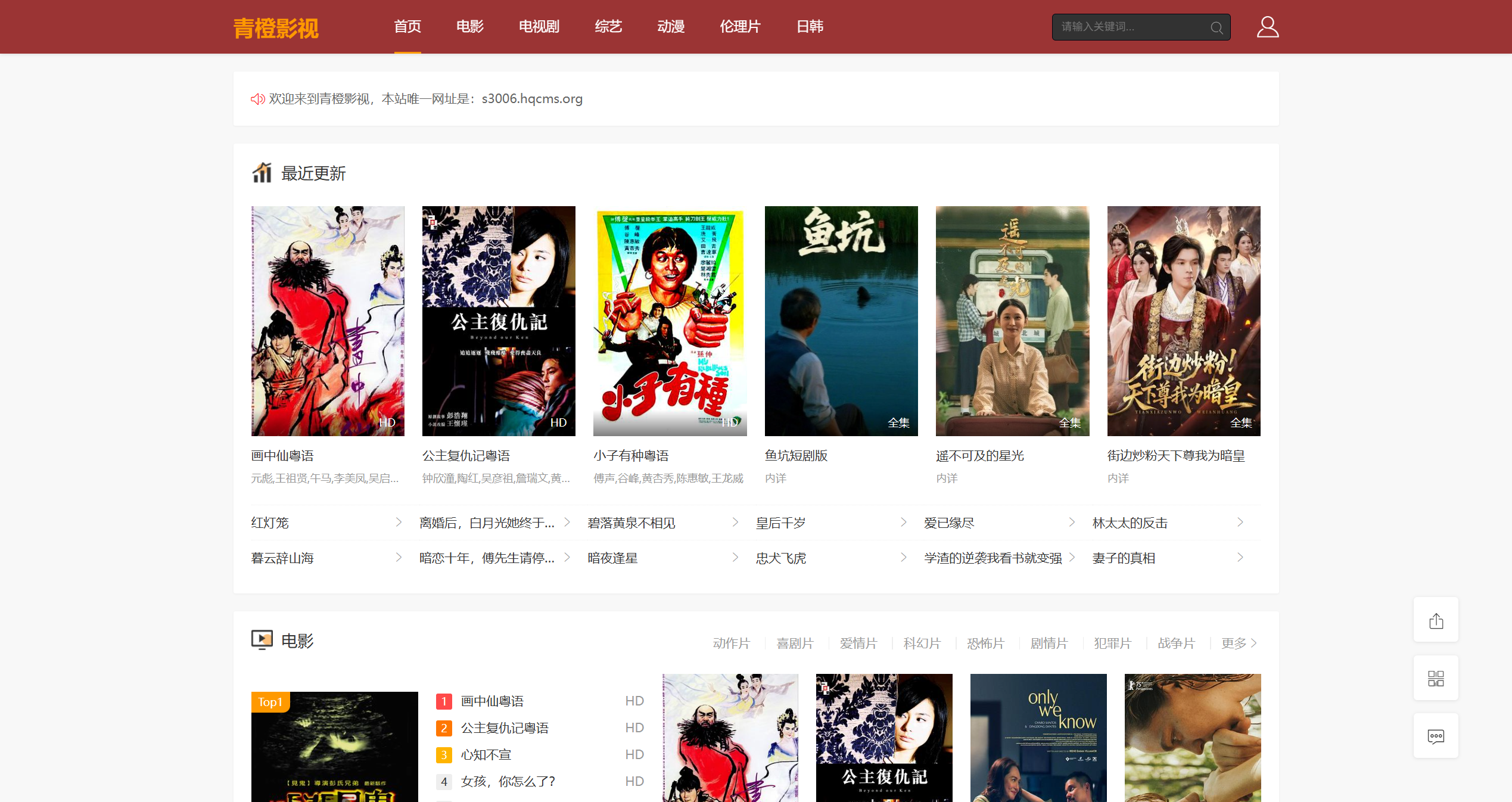 1、模板风格 环球CMS 工作室环球CMS-3006风格是 环球CMS 工作室采用苹果cmsV10模板风格最新程序制作.