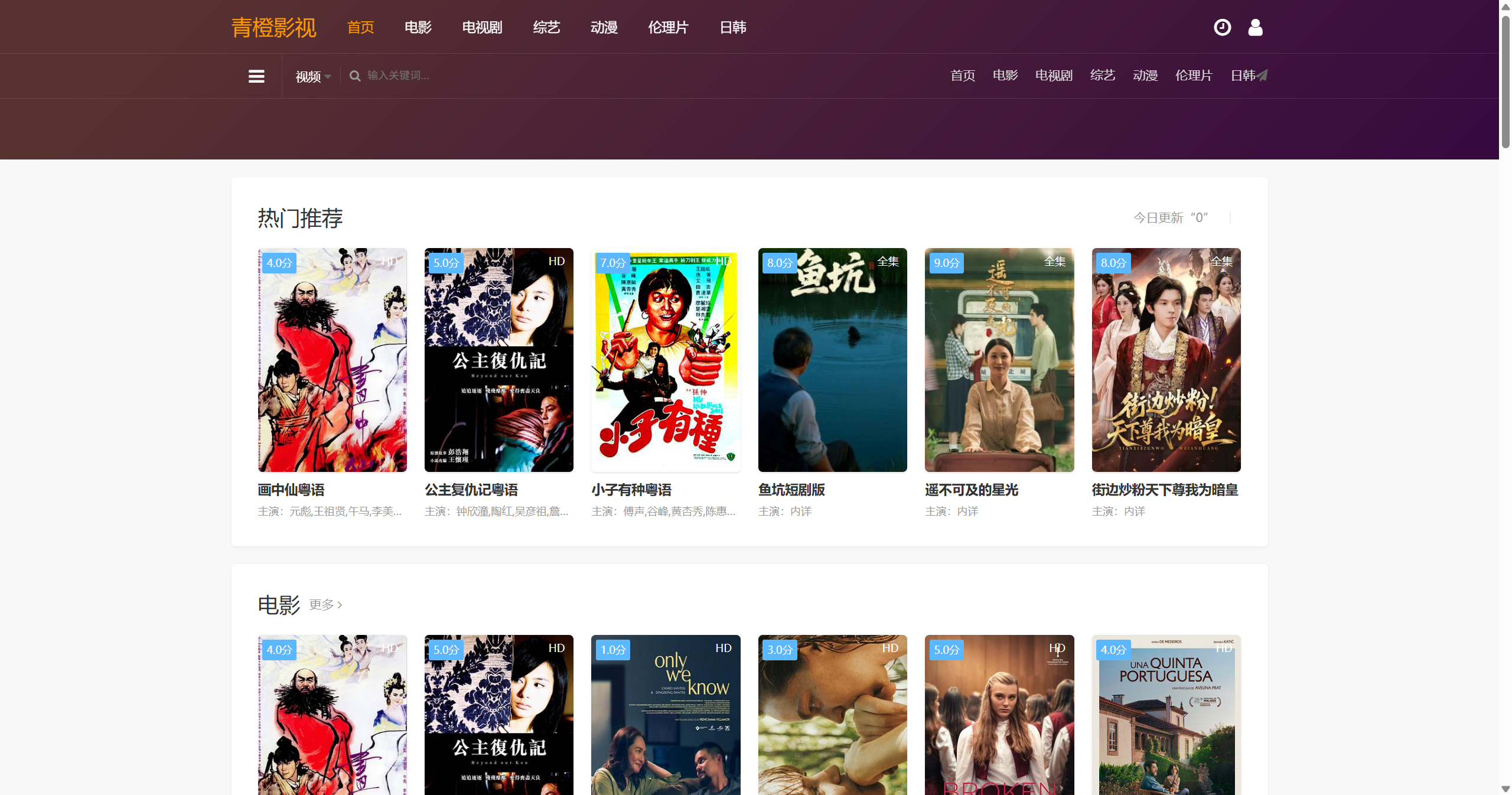 3、演示站已展示页面为模板定制化设计,未展示页面沿用苹果cmsV10模板风格源程序默认布局,结构清晰易区分,无需担心布局混淆问题。